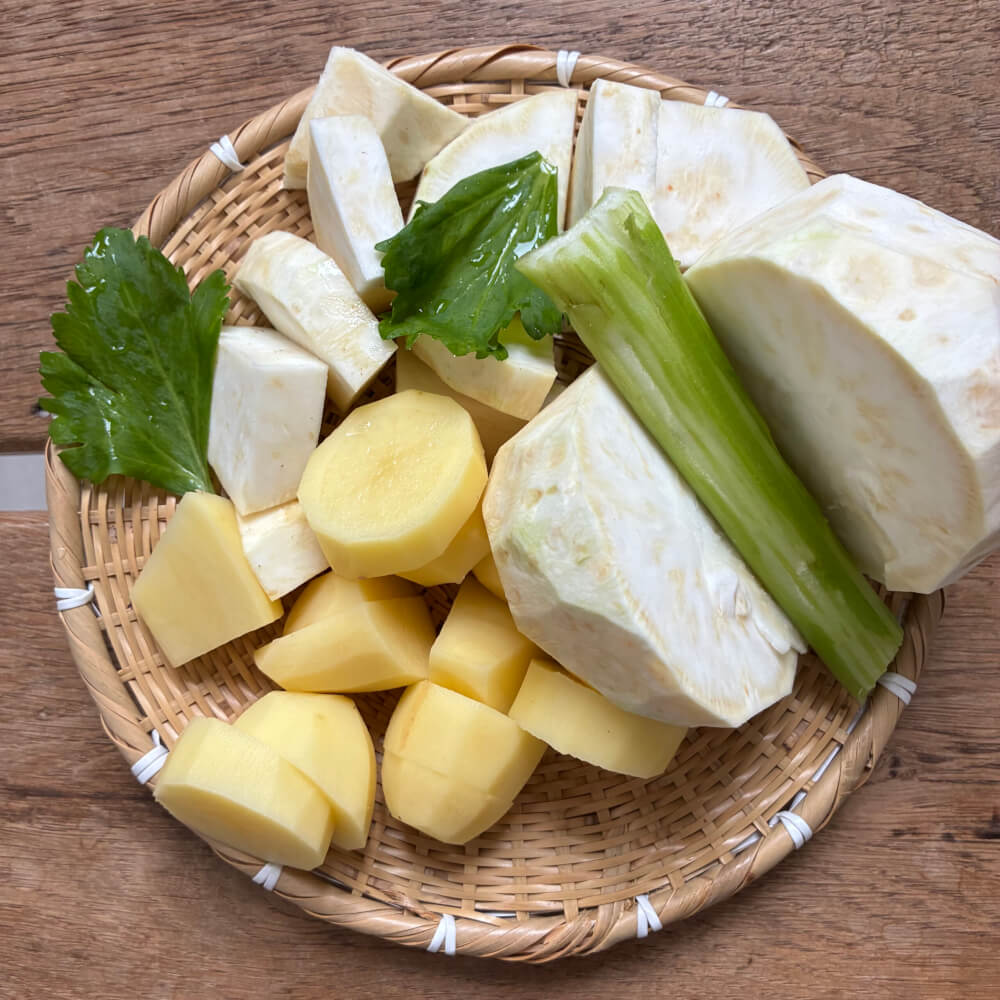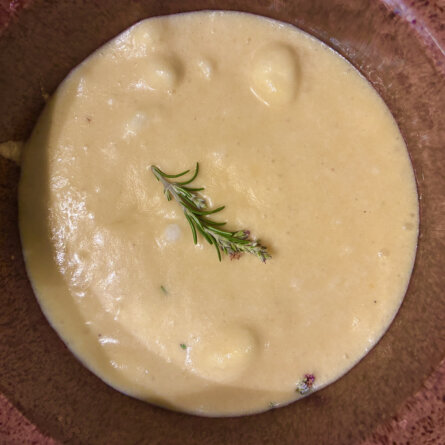 Menus du Samedi 7 février 2026 Passé au mixeur plongeant après le moulinage, plus crème fraîche Déjeuner Croque-monsieur simplissime Poire tardive Dîner Velouté aux deux céleris Côtes d’agneau Riz grillé un peu tahdig (voir le NB) Oranges et grenade égrainée