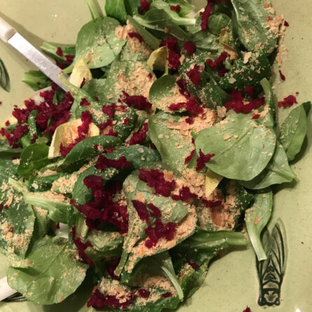 Menus du Dimanche 15 décembre 2024 Sur le dessus, super levure et râpée de betterave crue Déjeuner Salade: avocat et pamplemousse ( rose, trop amer) Riz grillé Clémentines Dîner Spaghetti aux palourdes Salade de mâche Fromages: Saint-Marcellin, mimolette vieille Salade de fruits: ananas, orange, grenade