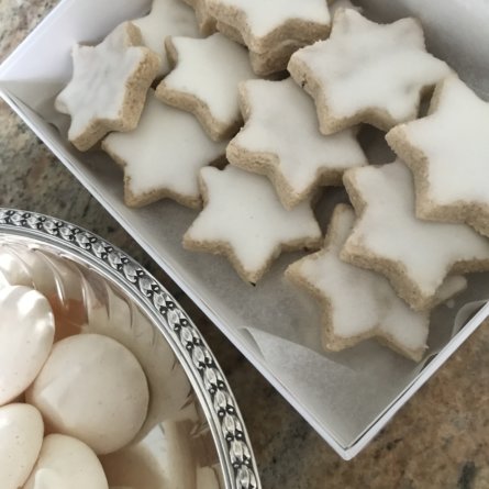Menus du Dimanche 20 décembre 2020 Petits biscuits, surtout les étoiles: c’est la pleine saison Déjeuner Sandwich au saucisson sec au fenouil Orange Dîner Tagliarelle aux chanterelles, mouillées d’un jus de cuisson de lentilles Salade: Trévise avec de la pomme La ronde des desserts…: Zimmet Sterne, meringues, kaki (encore bon, celui-là), kaki séché, confiture de châtaignes (de 2007!) fin du pot