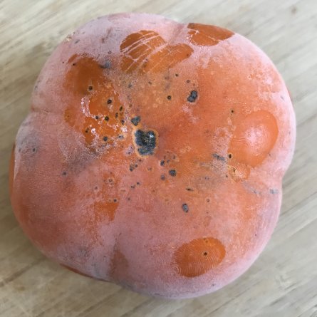 Kaki givré pas joli mais très bon, avec les empreintes digitales de la cuisinière