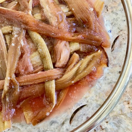 Menus du Dimanche 26 avril 2020 À ce jour, c’est comme ça que la cuisinière aime la rhubarbe Déjeuner Encore du taboulé, à l’orange cette fois Yaourt et miel Dîner plutôt italien et très réussi Polenta Bramata pas instantanée (confinement permet) servie avec: … une poêlée de champignons (shitake, champignons de Paris et 4 giroles) …du spaeck …et du gorgonzola Salade: batavia Rhubarbe confite au four (recette n°2) Macarons à l’ancienne (poudre d’amandes complète)