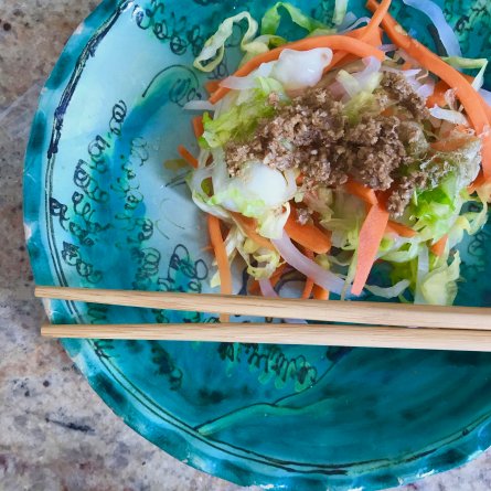 Menus du Dimanche 3 avril 2022 Croquant, sain, pas cher Déjeuner Vaute expérience n°2, aux asperges vertes (peu parfumées) Légumes à la japonaise suite et fin Compote de rhubarbe suite et fin Dîner