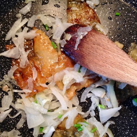 Les oignons pour le hachis sont cuits dans le gras des peaux de poularde (dégustées ensuite, bien croustillantes) eh oui.