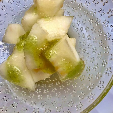 Menus du Dimanche 7 mais 2023 Le melon n’a guère de saveur, la confiture d’angélique, si Déjeuner Soufflé au chèvre suite et fin Poire Pain au petit épeautre, beurre Dîner Soupe aux orties Spaghetti sauce tomate Melon Gallia et confiture d’angélique du Marais Poitevin