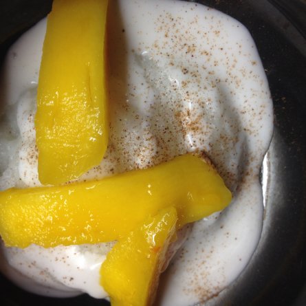 Menus du Jeudi 13 décembre 2018 Dessert: un truc de malade aux deux sens du terme ! Déjeuner de convalescence suite… Salade de trévise et de betteraves Bouillie de polenta blanche, lait de coco et mangue Diner, idem Bouillon aux champignons séchés pas mauvais du tout Fromage: crottin de Chavignol Compote de poires et de pommes suite et fin