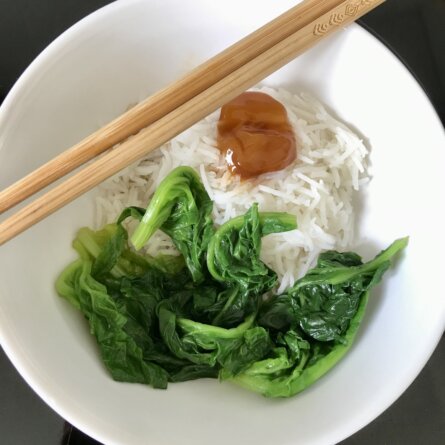 Menus du Jeudi 27 juillet 2023 Le petit jaune d’œuf, un vrai bonbon ! Arroser avec la sauce du « confit » Déjeuner simple et bon, un peu nippon Riz (utilisé par erreur du Basmati au lieu de riz pour risotto ou japonais) Jaune d’œuf confit dans la sauce soja Épinards Une poignée de cerises Rainier tardives, chères, très savoureuses Dîner, dehors