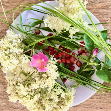Menus du Jeudi 4 juillet 2024 Le sucre de roses est fait avec une autre variété que les les rosa canina de la photo, d’un rose vif, chiffonnées et parfumées Déjeuner, là- haut sur la montagne Dîner Ribelli de polenta, suite et fin, avec de la tome de montagne Salade croquante Fraises des bois , crème fraîche et sucre de roses, che bontà!