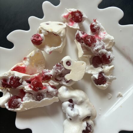 Photo qui ne « paye pas de mine »: groseilles meringuées de la veille. Délicieux