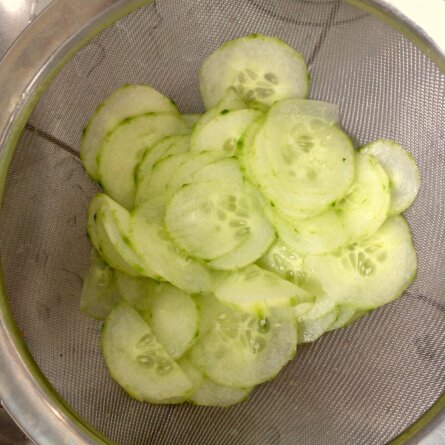 Dégorgés, les concombres. Résultat, il n’en reste que la moitié…mais bien meilleure