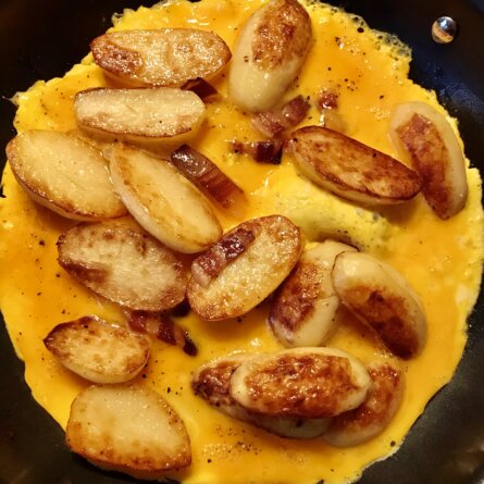 Menus du Lundi 10 avril 2023 Pliage impossible: trop de pommes de terre ! Déjeuner Soupe de restes: lentilles et pois chiches Poire et Cantal Dîner Omelette aux pommes de terre sautées et quelques petits lardons Salade: mâche et endives Charlotte aux fraises facile
