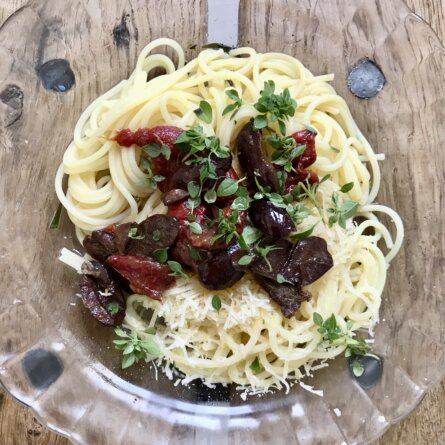 Menus du Lundi 12 juin 2023 Un reste de poivrons congelés en 2022+ des olives+1 anchois au sel, fondus dans la poêle. Basilic, parmesan Déjeuner Dîner Salade de radis avec les fanes Spaghetti à la sauce de ce qu’on a sous la main… Cerises cuites