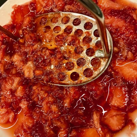 Un presse-purée pour transformer les fraises en coulis