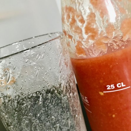 Menus du Lundi 26 août 2019 La bouteille est bientôt vide. C’est si frais et si facile à préparer, on va recommencer Déjeuner, franchement rien, trop chaud Gaspacho Mozarella, à peine Dîner Melon Salade tiède de moules et de cocos, au fenouil Fromage: Saint Marcellin Fruits sous le grill encore: mirabelles et mûres