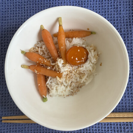 Les carottes: lavées mais vu la taille, pas pelées. Un des plats favoris de la cuisinière !
