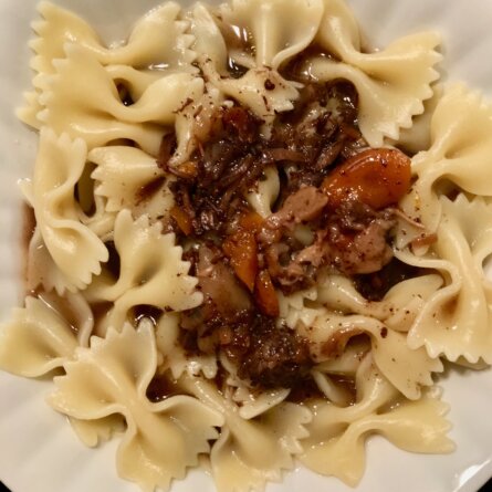 Menus du Lundi 3 octobre 2022 Farfalle, che bontà ! Déjeuner Dîner Pâtes papillon à la sauce bourguignonne – cuisine des restes Salade multifeuilles Poires sous grill et crème fraîche à la sortie du four Speculoos