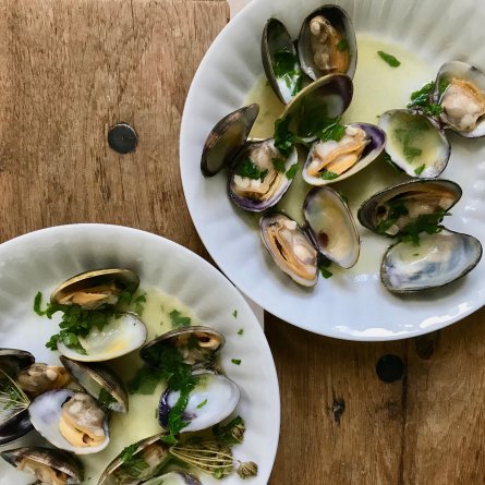 Menus du Lundi 4 mai 2020 Toutes simples, 6 grosses par personne. Fleurs de fenouil et persil Déjeuner Salade: épinards, concombre (pas vraiment de saison) Poulet mayonnaise, suite et fin Chips Baby banane Dîner Palourdes sans spaghetti, mais… …Tagliatelle au pesto de cresson (du congélateur) Fraises gariguette