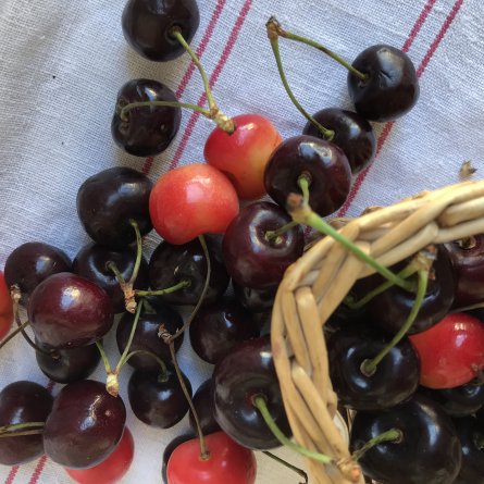 Menus du Mardi 16 juin 2020 C’est une année à cerises. Cette semaine la cuisinière voit rouge… Déjeuner, un croissant et des figues sèches Dîner Crème de petits pois (du congélateur), servie chaude Poulet froid, mayonnaise Pommes de terre sautées, avec du romarin Fromage: Gorgonzola Cerises