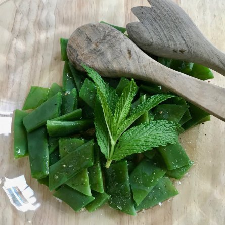 Menus du Mardi 23 avril 2019 Le début des haricots…Sans fils, croquants et à la menthe. Bons Déjeuner: la cuisinière fait du shopping et prend du retard dans ses menus! Dîner Côtes d’agneau Salade de haricots plats Fromages: Roquefort Carles (encore déçue!) Compote de pommes aux fraises