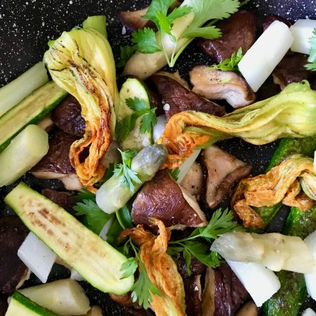 Menus du Mardi 23 juin 2020 Avec 5 ingrédients sans compter les herbes et les nouilles. Toujours un régal… Déjeuner Sandwich baguette avec de la terrine de « cochon » noir basque de chez un bon charcutier et des cornichons Salade de romaine rouge Pêche Dîner royal et simple à la fois Soupe aux nouilles n° 20! Fromage Gorgonzola Crumble aux abricots, couvert de cassis crus, crème fraîche Compote de cerises