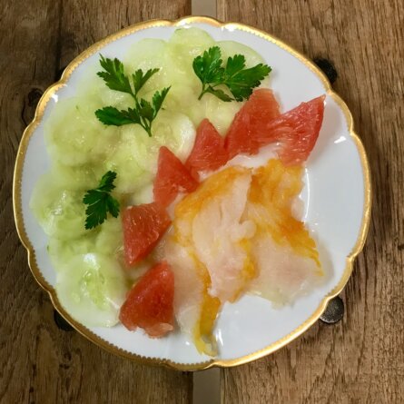 Menus du Mardi 3 septembre 2023, quel retard… Haddock médiocre, pamplemousse hors saison: bon quand même… Déjeuner, au musée Dîner Haddock fumé cru, concombre et pamplemousse Lentilles, suite et fin Compote d’abricots cuits en aout, décongelée