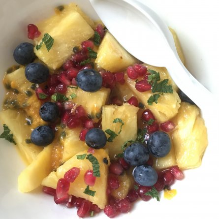 Menus du Mardi 6 avril 2021 Aussi bonne sans les insignifiantes myrtilles… Déjeuner Dîner Radis beurre Poulet aux clémentines suite, encore meilleur Semoule Salade de fruits: ananas etc…