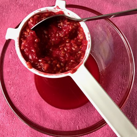 Menus du Mercredi 10 juillet 2019 Passage à petite vitesse d’un coulis de groseilles dans une passoire à thé… Déjeuner: les restes Carottes et pomme râpées au jus d’orange Reste de la rœsti Reste des pizzocheri Pêches Dîner Langue fumée, suite Ribelli, suite (traditionnelle) de la polenta… Salade: laitue rouge Compote de cerises et groseilles à maquereau au coulis de groseilles Amaretti (du pâtissier! Voir le 5 juillet 2016)