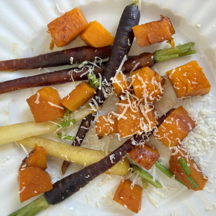 Menus du Mercredi 17 septembre 2025 Et un peu de parmesan. Pas senti de différence de saveur avec le potimarron Déjeuner Avocat Courge de Hongrie, mini carottes, poêlées Nectarine Dîner Anguille fumée, pain grillé, jus de citron. Miam, cher. Courge de Hongrie, mini carottes…Plus des grains de raisin italien, puisque c’était bon, avec de la semoule. Encore plus bon. Voir aussi ici Mirabelles( il y en a encore!) et mûres insipides, sous le grill. Très bon