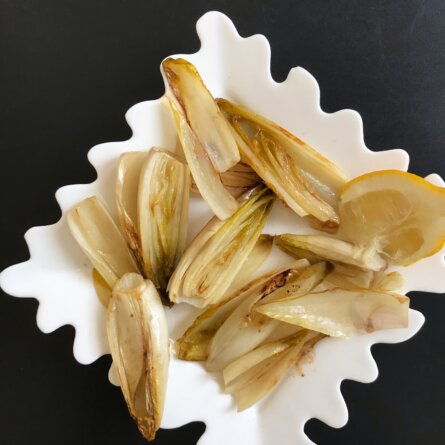 Menus du Mercredi 1er février 2023: déjà! Minuscules et croquantes-quoique-cuites Déjeuner Endivettes de pleine terre Thon à l’huile Pomme Dîner Boîte chaude Pommes de terre mi-eau mi-four Lard de montagne (rapporté dans le sac à dos) Salade: endives, mache, pomme, huile de noisettes Dessert divin: litchies et coulis de fruits rouges