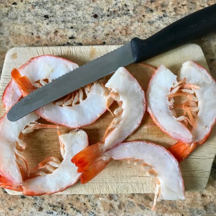 Compter 4 par personne. Retirer le filament noir, c’est l’intestin.