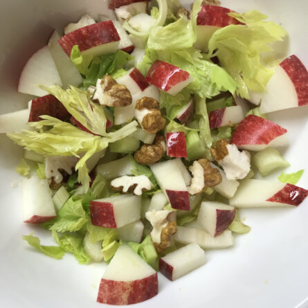 Menus du Mercredi 23 octobre 2024 De saison avec des noix fraîches (médiocres cette année, trop de pluie?) Déjeuner Focaccia délicieuse de chez le boulanger Pomme Mangue séchée Dîner Salade Waldorf Œuf à la coque Éclair au chocolat du même boulanger