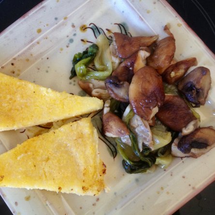 Menus du Mercredi 26 septembre 2018 Le mélange bettes + shitake + copeaux de parmesan = un plat complet savoureux Déjeuner décongelé Poêlée de shitake et quelques bettes Polenta grillée Melon Dîner Bar au four Cocos de Paimpol très tendres et haricots verts Fromage: brie de Meaux Compote de quetsches