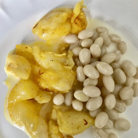 Menus du Mercredi 26 juillet 2023 Le safran a relevé l’absence de saveur du poisson! Les cocos à la crème (et au safran): à refaire i Déjeuner « Frichti » de courgettes sautées et de sauce tomate, mélangé à de la semoule (le reste) Nectarine Dîner Joues de cabillaud Cocos de Paimpol, le tout à la crème et au safran Fromages: Tome de brebis, Pont l’évêque Crumble aux abricots ( bon, tout le monde sait faire!)