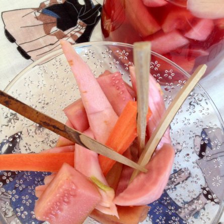 Menus du Mercredi 30 janvier 2019 Ces pickles japonais se dégustent comme « amuse bouche » et à toute heure du jour… Déjeuner Légumes marinés à la japonaise Saucisse de Morteaux Purée de pois cassés Ananas Petits gâteaux: Zimmet kuche Dîner