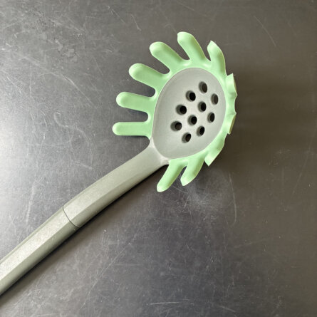 Essentiel pour obtenir de la purée de pomme de terre (au robot la trop grande vitesse transforme la purée en colle), pour paser la soupe, les coulis, les fruits, la confiture etc… Les parties dures comme les peaux, les graines, ou les pépins restent dans le disque à trous. Attention aux fruits rouges, mieux vaut un moulin à légumes en inox (le mien est en acier galvanisé).