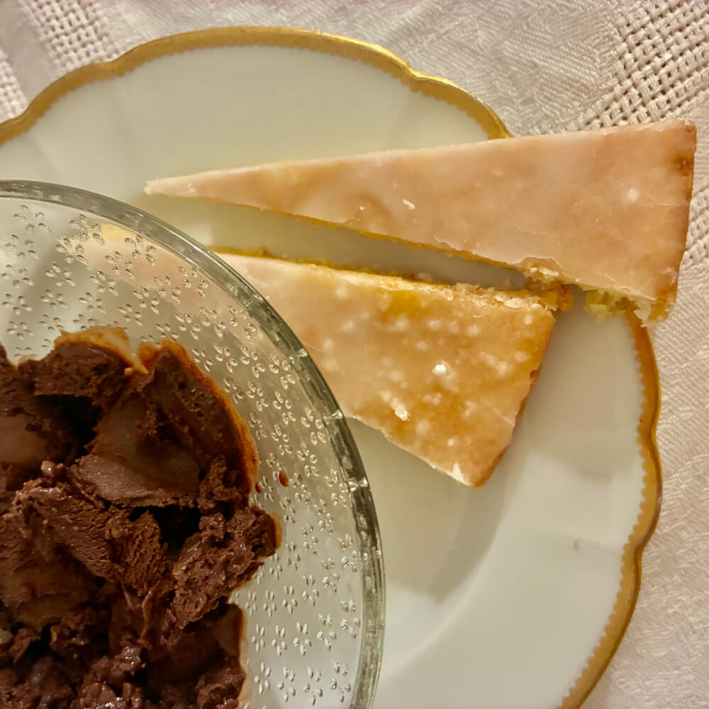 Sorbet au chocolat + gâteau aux amandes parfumé au kirsch = une première et un mariage d’amour! À refaire !