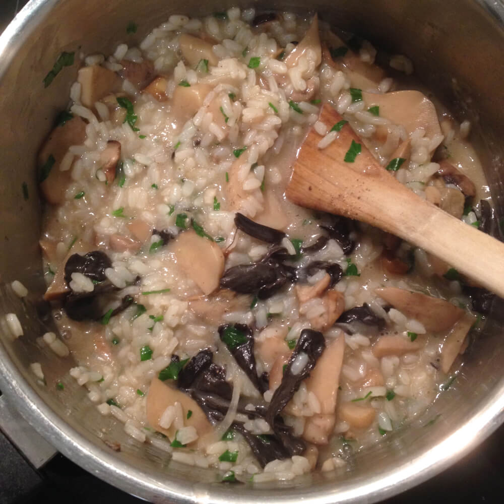 Ce risotto-là est aux ceps et aux trompettes, mais des champignons de Paris font très bien l’affaire!