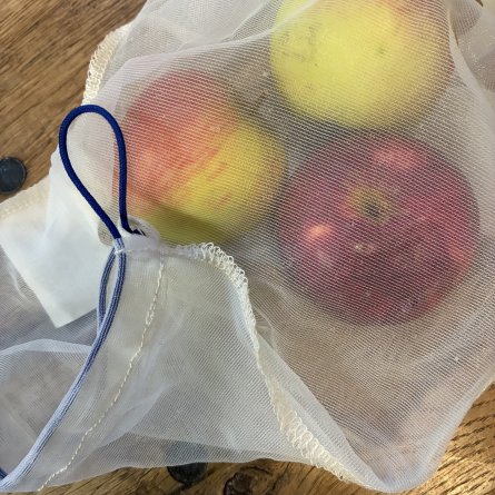 Quand les pommes sont cuites, on les verse sur un tamis ou dans un linge suspendu (voir les coings). Cette fois je les ai laissées s’égoutter quelques heures dans * un sac pour peser les fruits et légumes.