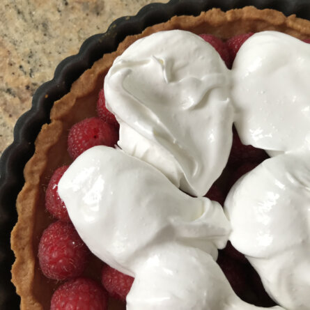 Tarte aux framboises meringuée qui croque