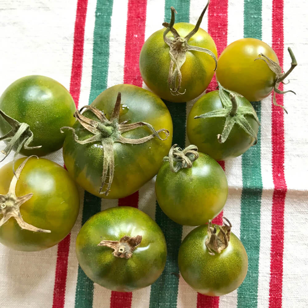 Ce n’est pas vraiment une recette, juste un pense-bête pour ne pas l’oublier… Faire dorer quelques tranches de lard fines, faire griller de la baguette, peler les tomates (ces vertes-ci des merveilles de douceur) et déguster un sandwich très raffiné…