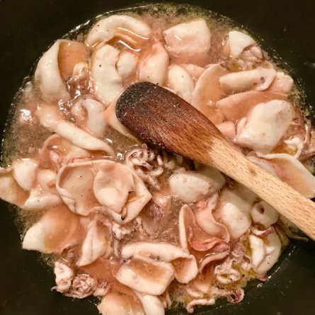 Menus du Samedi 12 décembre 2020 La cuisinière préfère les petits encornets. Ils sont très tendres Déjeuner Avocat, jus de citron Terrine de campagne du boucher, baguette Ananas Dîner un mariage italo-autrichien Encornets à la romaine Polenta dorée à la poêle Salade d’endivettes Linzer torte