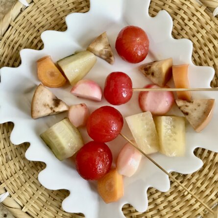 Menus du Samedi 19 août 2023 Le meilleur: les mini tomates (pelées) ajoutées il y a 3 jours. le concombre, plus ancien, très bon aussi Déjeuner Légumes au vinaigre à la nippone Salade de haricots plats et haricots verts Mirabelles si mignonnes Dîner Soupe au pistou, suite et fin. Servie tiède Pain grillé et fromage: brebis Figues et fin du coulis de framboises