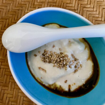 Menus du Samedi 1er mars 2025 Un peu de sauce soja, du sésame grillé, excellent Déjeuner Tofu soyeux Chips Baby banane Dîner Rouget au four, un luxe Riz basmati Sauce tomate (congelée cet été)