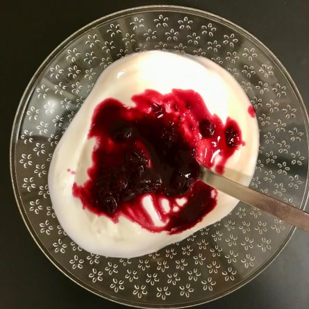 Menus du Samedi 6 février 2021 C’était de la purée de cassis. Par manque de temps elle n’était pas devenue coulis. Il a suffit de la passer. Déjeuner Aubergine mauves (qui ne sont ni d’ici ni de saison…mais c’était très bon) Riz grillé au curry (inspiré de très très loin du riz Tahdig) Yaourt grec et coulis de cassis du congélateur (de cet été) Dîner Thon mi-cuit ( 2 cm d’épaisseur, 1 goutte d’huile dans la poêle. 2 mn 1/2 de chaque côté, départ à feu vif, puis baisser) Riz (encore!!!) Sauce tomate maison du congélateur Salade d’oranges (en suprêmes) à l’eau de fleur d’oranger