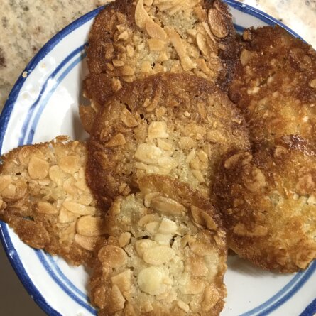 Menus du Samedi 9 août 2023 Dangereux…Vite croqués. Caché une partie dans une boîte en fer Déjeuner: la cuisinière attend la pluie Dîner Tout petits et tendres encornets: cuisson 8mn Ratatouille simplifiée, cuite le matin: mini poivrons rouges, aubergines mauves et tomates sans la peau. Mangée froide Faux taboulé, cuit le matin Figues et framboises médiocres. Il faut passer au raisin et aux poires Tuiles au caramel d’orange, cuits le matin…