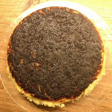 Aïe aïe! la rœsti a brûlé! À ranger dans les ratés. Bon, en grattant un peu, on l’a mangée quand même