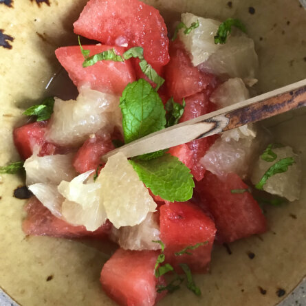 Menus du Vendredi 16 août 2024 Pourquoi pas? même si ce n’est pas la saison des pamplemousses Déjeuner Pastèque et pamplemousse, menthe Salade de haricots verts et thon en boîte Mirabelles Dîner, dehors