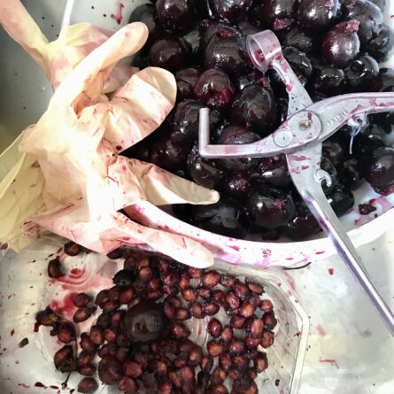 Menus du Vendredi 19 juillet 2024 8 h du matin. Le chantier d’une confiture de cerises noires Déjeuner Spaghetti au pesto paresseux : basilic haché, parmesan râpé, huile d’olive …le tout versé directement dans l’assiette Pêche Dîner, il fait chaud Sorte de sashimi de thon (cuit, tranché finement, refroidi, riz, salade de concombre, gingembre au vinagre en pot, baguettes…) Framboises à la crème