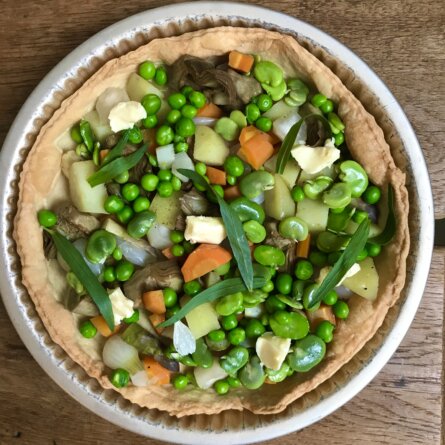 Menus du Vendredi 3 mai 2024 Fèves, petits pois, artichauts violets, 1 carotte, 2 petites pommes de terre, 4 oignons nouveaux. Hop au four! Déjeuner Soupe de cosses suite (le reste: au congélateur) Œuf à la coque Fraises Dîner Tarte aux légumes comme Alice Toklas (pâte achetée: la mienne est meilleure) Pâté de campagne suite et fin, cornichons Melon Galia