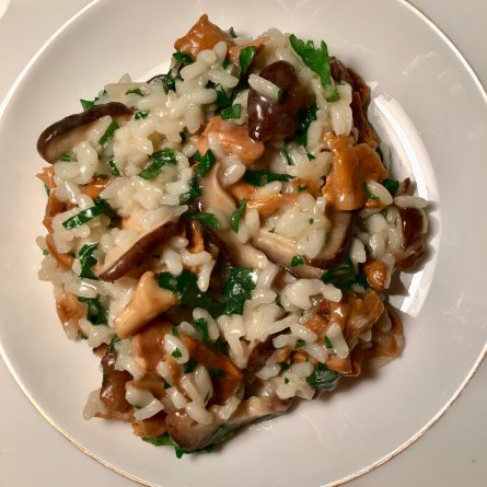 Menus du Vendredi 5 février 2021 Il était parfait…texture, saveur Déjeuner Légumes de la veille, sauce vinaigrette Œuf à la coque Ananas poêlé Dîner Salade: pamplemousse (blanc, très doux), avocat, pince de crabe. Faire un tour du côté des salades…(74 au moins) Risotto aux champignons (dont des giroles totalement hors saison ! la cuisinière oublie tous ses principes: la faute au corona Mayonnaise au chocolat (pas fait ça depuis des lustres)