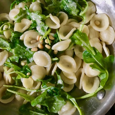 Menus du Vendredi 5 juin 2020 La roquette est ajouter à la dernière minute. Un délicieux plat de pâtes Déjeuner Sandwich au thon dans un pain au lait Pêche plate sans étiquette ! Et bonne ! Dîner Pamplemousse Orechiette à la roquette Compote de cerises